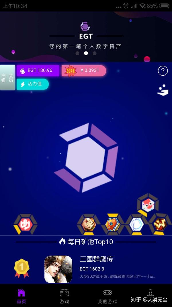 玩家入住乐游链通过游戏体验获得平台通用凭证EGT,通过EGT在平台内的占有比例来分取平台的大部分收益。